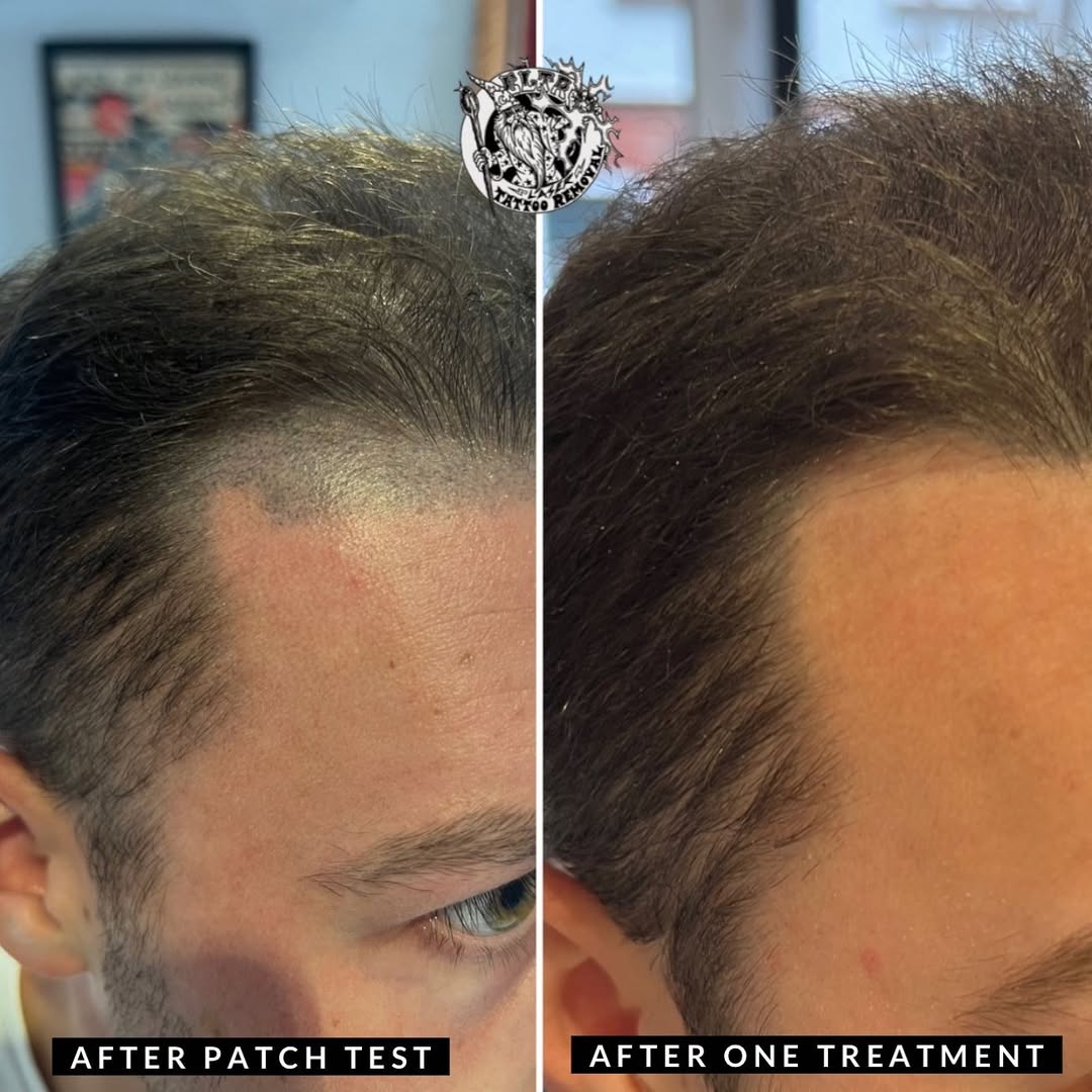 Scalp Micropigmentation is a a series of dots tattooed to look like stubble. These tend to respond quickly as they are much shallower than a regular tattoo, as with SPMU 1-3 treatments is usually enough to clear it fully.