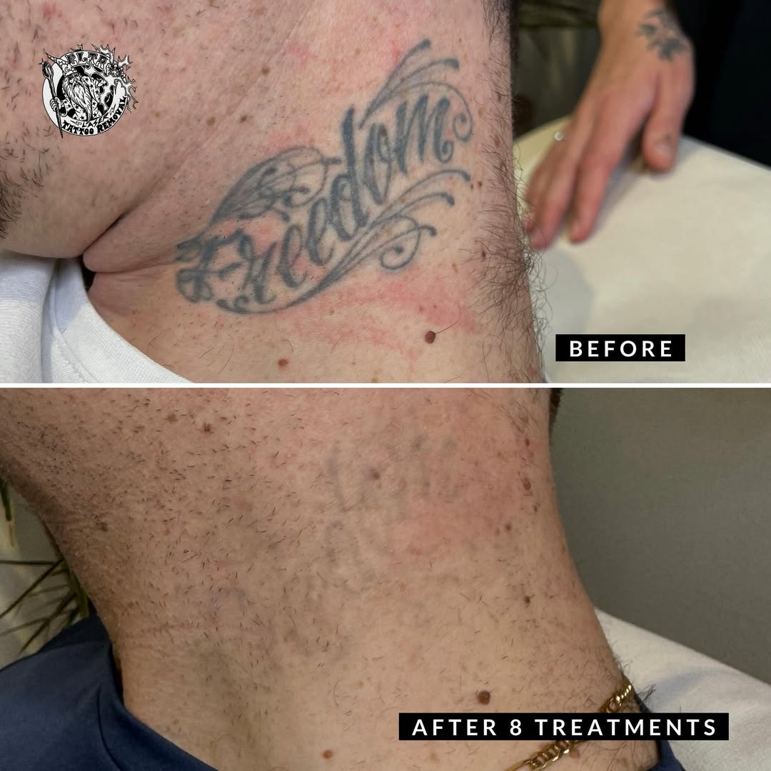 This process starts with a consultation to discuss all options going forward. Once a treatment plan is in place we get the ball rolling with a free patch test. We then treat the area as many times as required to achieve the desired outcome. Treatments need to be at least 6-8 weeks apart initially but that gap increases once the tattoo has faded considerably.